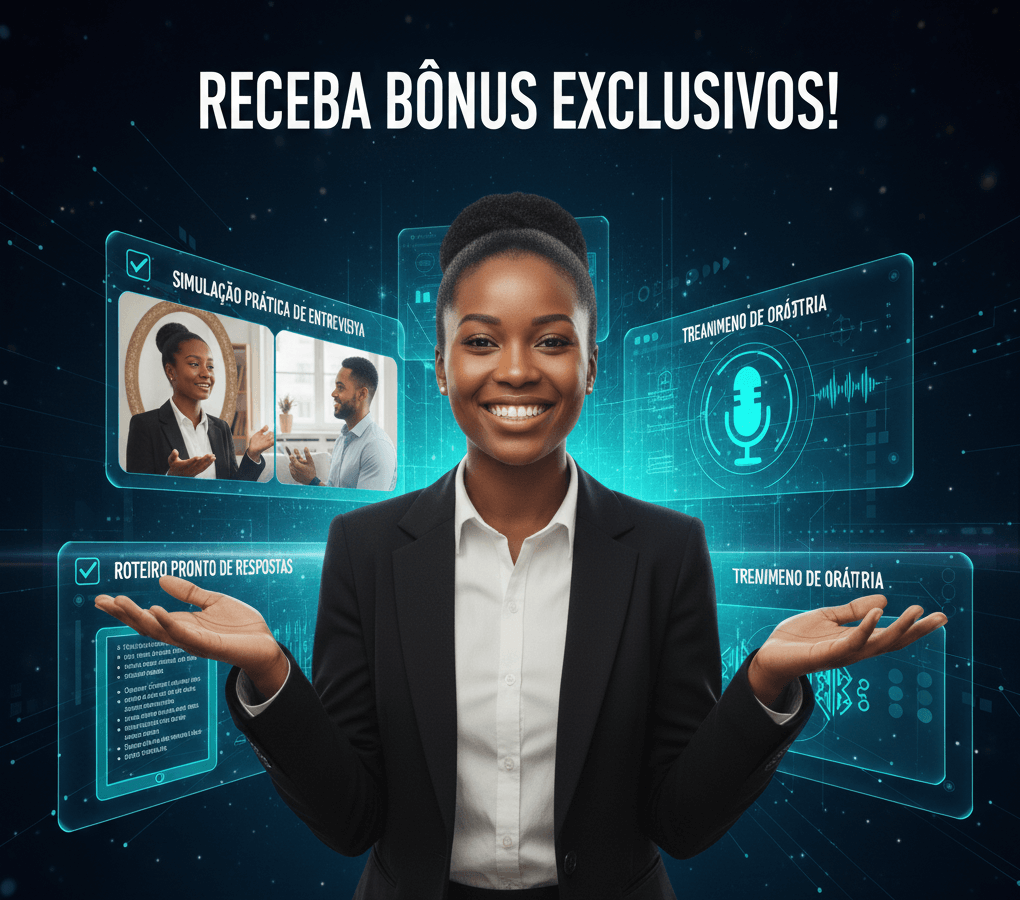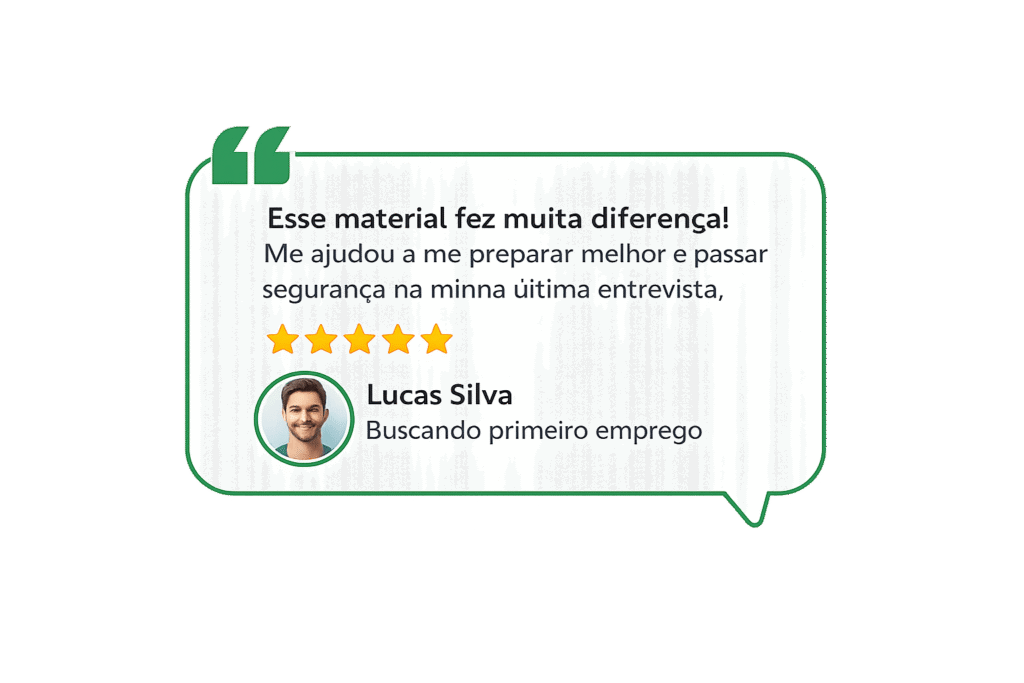 Tenha acesso a respostas estruturadas para as principais perguntas de entrevista, facilitando sua preparação e ajudando você a falar com clareza, segurança e organização.